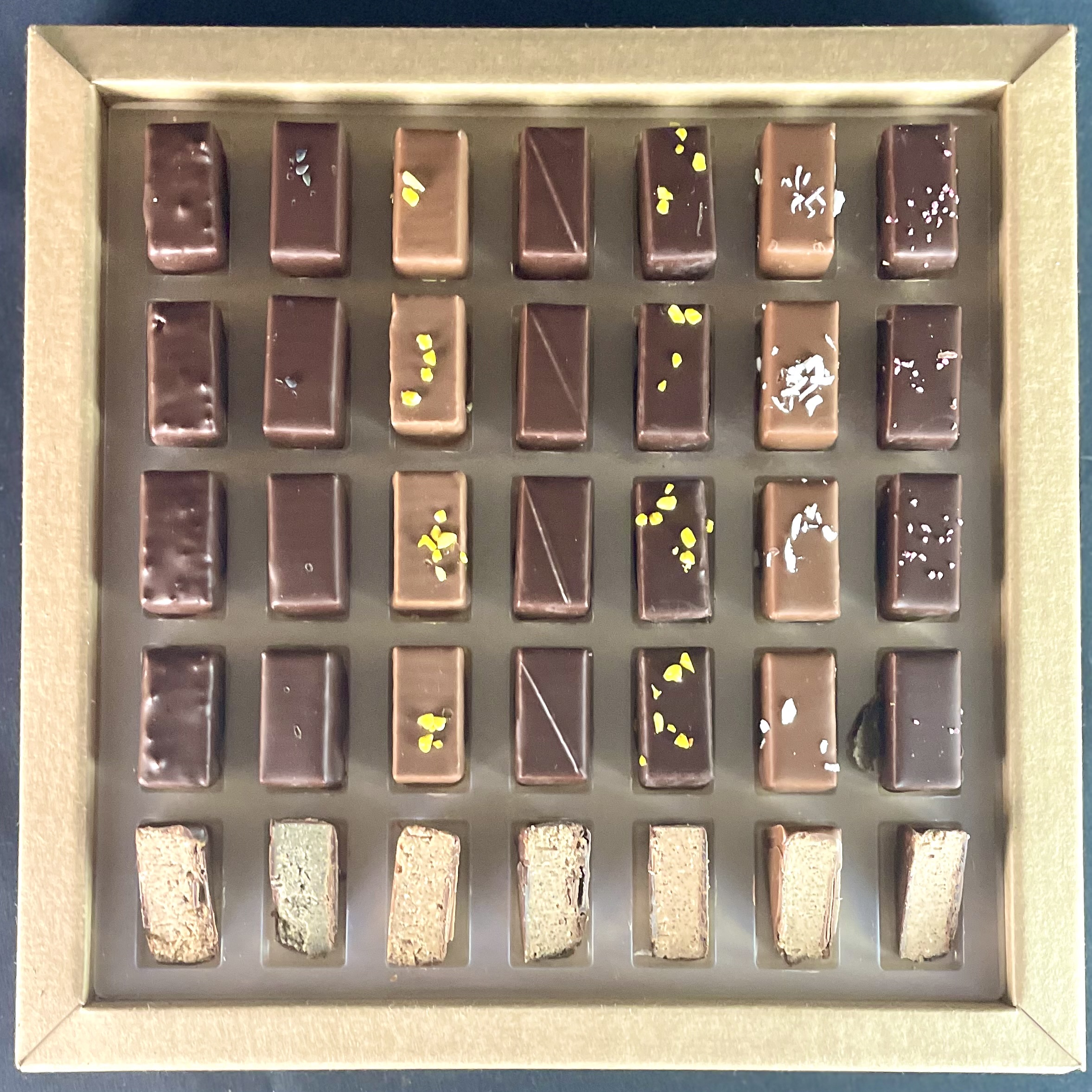 Ce coffret propose un assortiments variés de pralinés. Des grands classiques aux plus inventifs, retrouvez 6 pralinés (dont 1 en enrobage lait), avec des granulométrie variées qui feront le plaisir des gourmands ! Pralinés Noisette du Piémont, en enrobage noir ( Criollo du Vénézuela 70%) et en enrobage Lait (Madagascar 43%), praliné Amande Valencia, Cul-Cul la praline, ) la Praline de Charlieu, Praliné Sésame ou encore Praliné Soba-Cha ( Sarrasin torréfié)