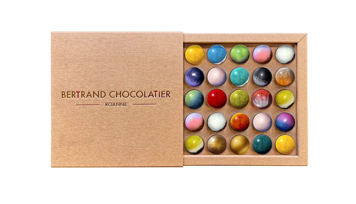 Retrouvez dans le coffret 25 dômes les parfums suivants : Cassis, Framboise, Cerise, Citron Jaune, Citron Vert du Brésil, Orange Maltaise, Noix de Coco, Fruit de la Passion, Litchi, Vanille de Tahiti, Rhum-Vanille, Yuzu, Sudachi (façon tarte au citron meringuée), Basilic, Cacahuète, Pistache de Bronte, Noisettes, Noix de écan française, Banane, Bourbon-Combava.